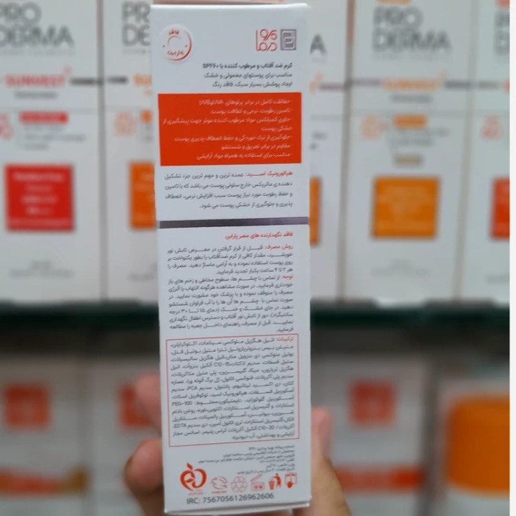 کرم ضد آفتاب و مرطوب کننده پرودرما فاقد نگهدارنده مضر پارابن و مقاوم در برابر تعریق و شستشو است. با داشتن ترکیبات آنتی اکسیدانی موثر سبب کاهش اثر آلودگی ها و عوامل نامطلوب جوی بر روی پوست میشود. همچنین با دارا بودن ترکیبات نرم کننده، سبب تامین رطوبت، نرمی و لطافت پوست میشود.